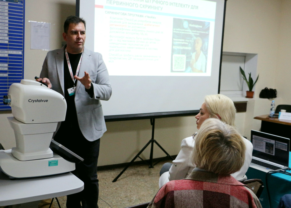 Також учасники конференції дізналися про новітні технології, які вже впроваджуються в лікарні №10. Було продемонстровано фундус-камеру для візуалізації ока та програму з штучним інтелектом для скринінгу діабетичної ретинопатії.